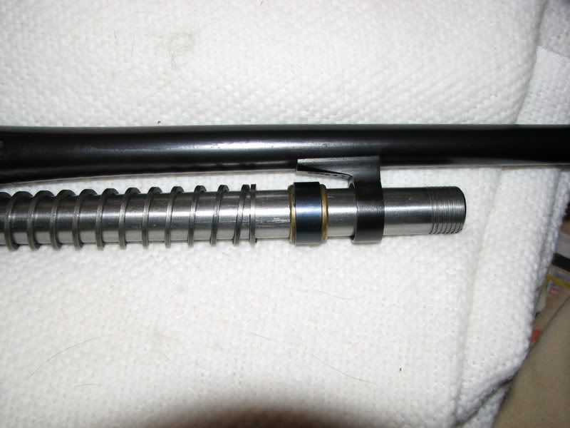 The other day I was getting my Sportsman ready for this upland season and when I took the forearm off to check and lube the friction spring, the little washer/nubbin that holds the coil spring inside the mag tube shot out and my spring flew ten feet into my back yard. I managed to get all parts back together again but something looks weird - like I'm missing a steel ring. If I remember correctly, the Sportsman 20ga friction components goes like this: heavy steel recoil spring over the mag tube, then a solid steel ring around the tube resting against the top of the recoil spring, with the brass ring on top of that, followed by the install of the forearm. But I'm not sure of this because I've read so many posts about friction rings I'm getting dizzy. I seem to recall the 20ga Sportsman might have been a little different - by not having that steel ring (only the brass ring). Anyway, I've taken a close up photo of my mag tube with the recoil spring and brass spring on it. Is this all I need? Or should I go into my back yard and start pawing through the grass for a steel ring????